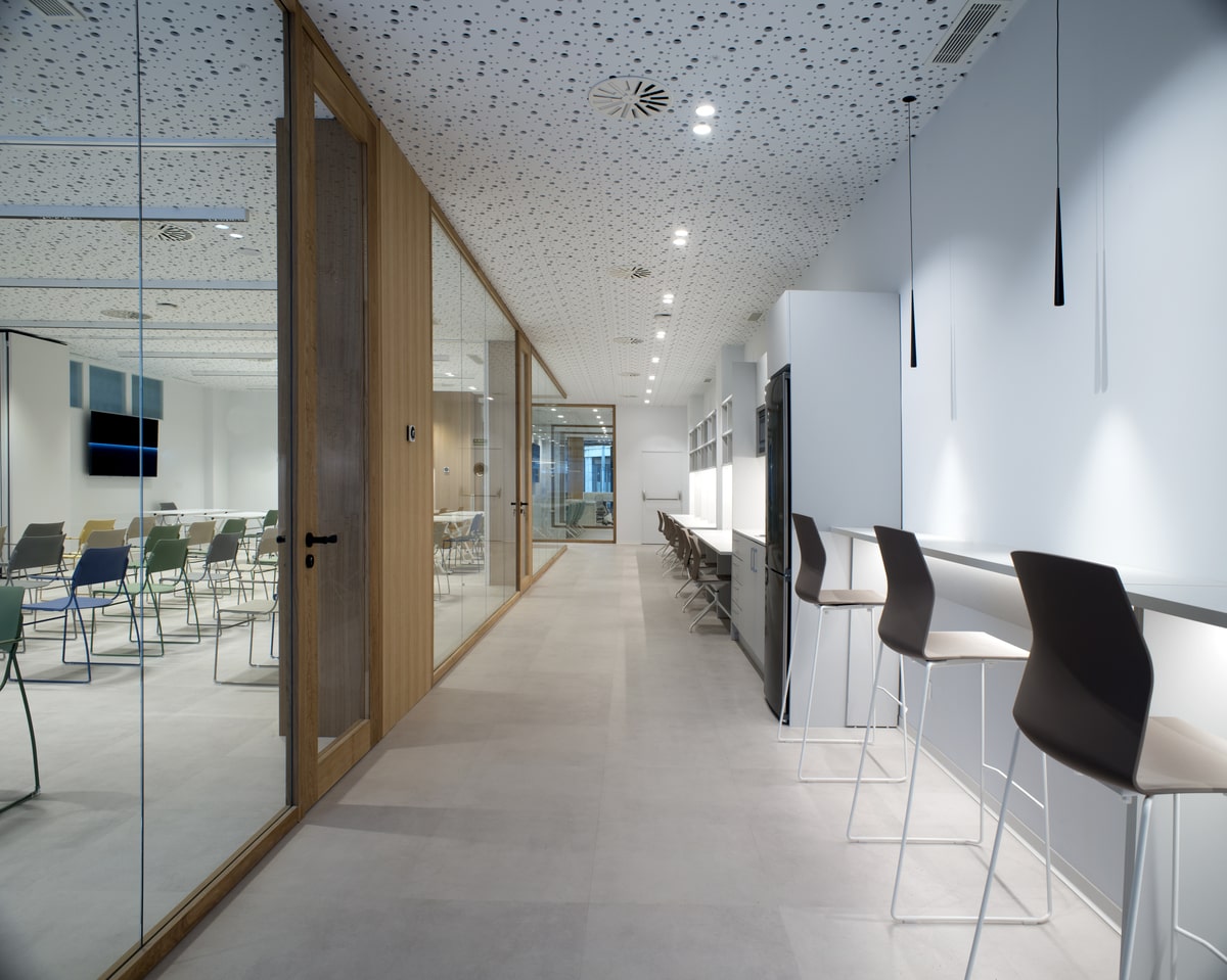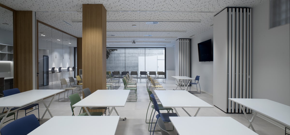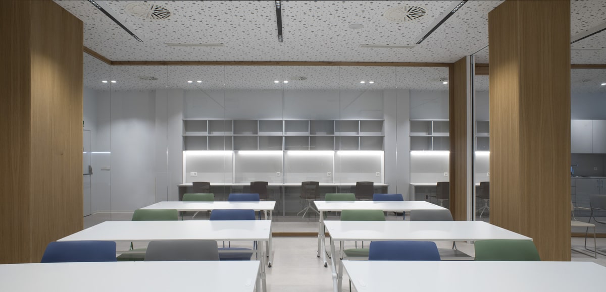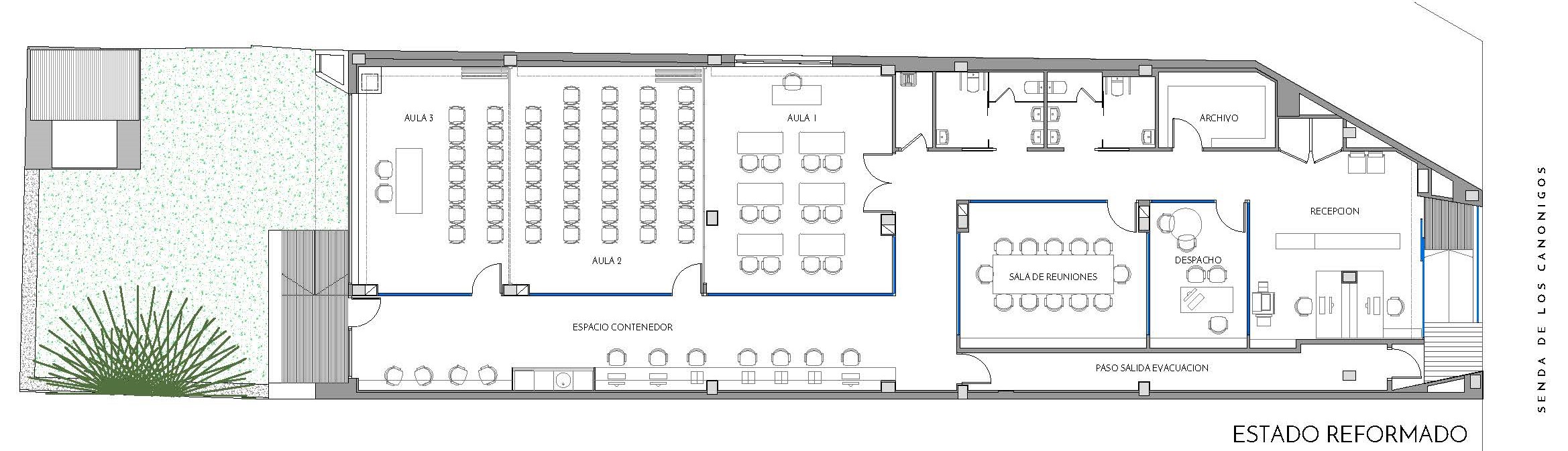 Se ha implantado un programa similar al existente, con una mayor flexibilidad espacial en lo que se refiere a las aulas de formación y una mayor transparencia de los espacios mediante mamparas acristaladas.