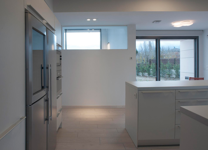Vivienda unifamiliar que se desarrolla fundamentalmente en planta baja, dejando únicamente para la planta primera un pequeño estudio en la doble altura del estar y una habitación de invitados con baño.