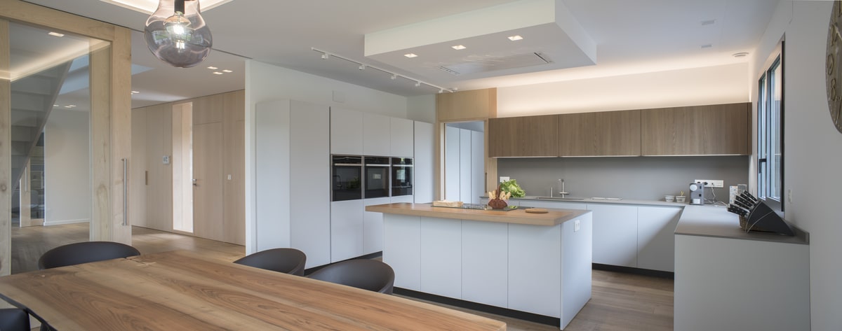 En la planta superior el programa de noche en dos zonas, dormitorio principal con vestidor y baño, y en la opuesta dos dormitorios cada uno de ellos con su baño.