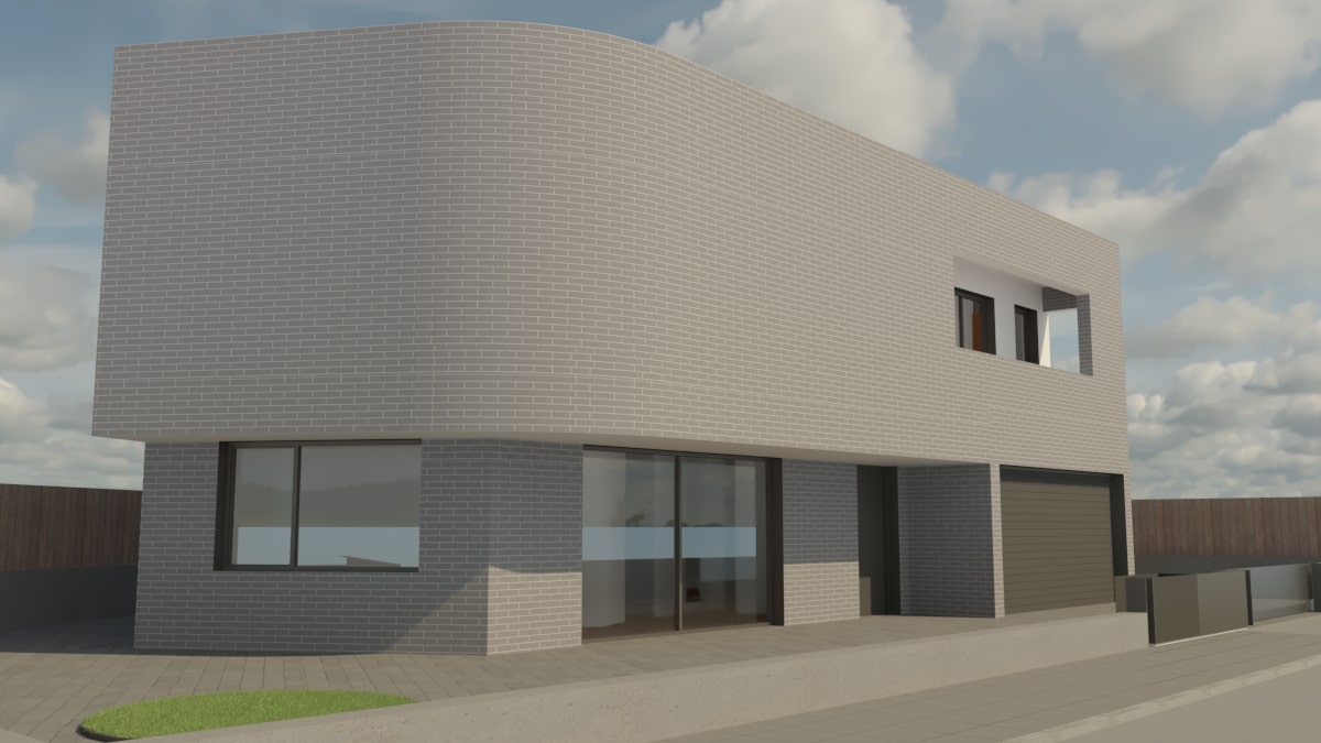El material de revestimiento es ladrillo clinker en color gris con carpinterías de aluminio en color oscuro, la cubierta es plana y accesible para las instalaciones.